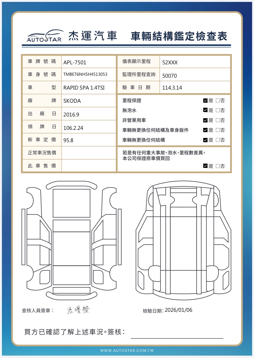 【杰運桃園】2016 Skoda Rapid Spaceback 1.4 TSI Style