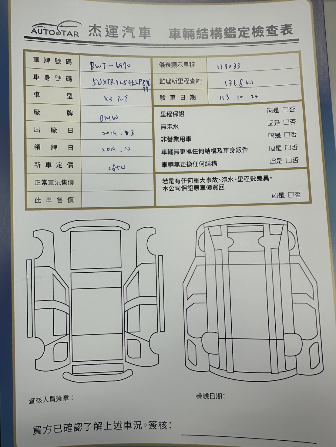2019年BMW X3 30i屬於豪華中型SUV,搭載2.0升TwinPower Turbo引擎,擁有高達252匹馬力與充沛扭力,兼顧動力與油耗表現。外型延續BMW家族式雙腎型水箱護罩與俐落車身線條,展現運動氣息。內裝具備高質感鋪陳,搭配iDrive多媒體系統、數位儀表與多項駕駛輔助科技,提升駕馭便利與安全。X3 30i同時提供xDrive智慧型四輪驅動,兼顧城市行駛與休旅需求,展現性能與實用並存的特質。