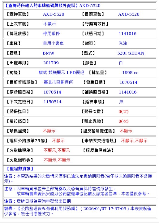 2017年09月出廠 2018年5月14日領牌 車里程:67159 公里