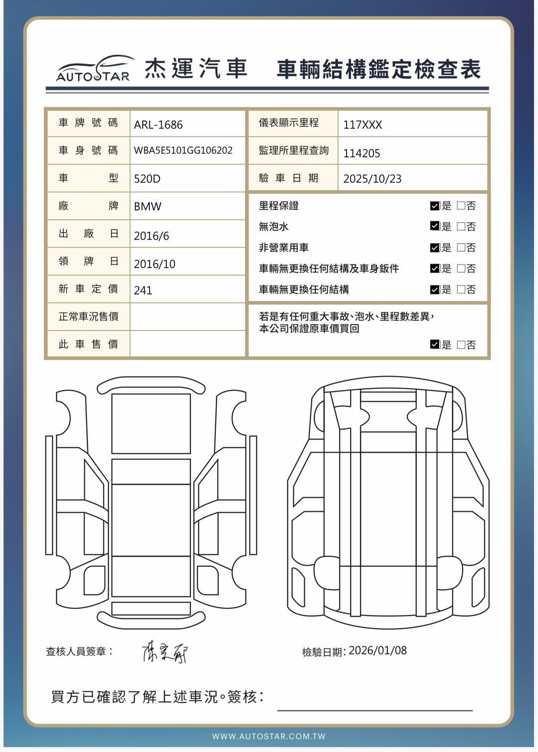2016年06月出廠 2016年10月28日領牌 實車里程:117367公里