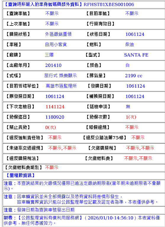 2014年10月出廠 2017年11月24日領牌 實車里程:213622公里