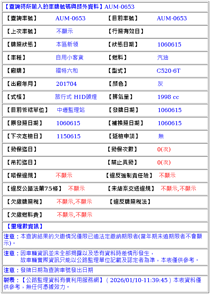 2017年4月出廠 2017年 6月15日領牌 實車里程:78740公里