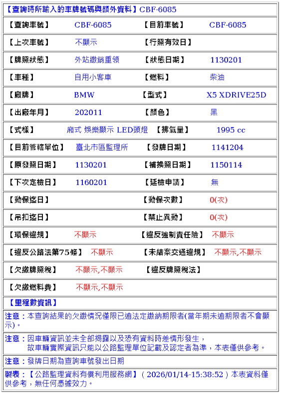 2020年11出廠 2024年02月01日領牌 實車里程:215671公里