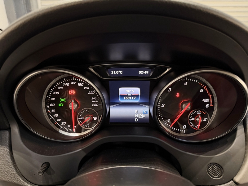2018 Mercedes-Benz GLA-Class GLA200d 是一款豪華緊湊型跨界 SUV,採用 2.1 L 渦輪增壓直列四缸柴油引擎,最大馬力約 136 hp、峰值扭力 30.6 kg·m,搭配 7 速雙離合自手排(7G-DCT) 變速箱並採 前輪驅動 設定,油耗表現平均約 19 km/L,兼顧省油與動力輸出。車身五門、五人座設計,車長約 4424 mm、軸距 2699 mm,提供實用行李箱空間(標準約 421 L、後座放倒至 1235 L)適合日常與旅行使用。外觀具家族式鍍鉻水箱護罩與 LED 燈組,內裝配置恆溫空調、方向盤快控鍵、藍牙/多媒體系統與定速巡航等實用配備,質感與舒適性兼具,是追求豪華品牌與經濟柴油動力的小型 SUV 選擇。