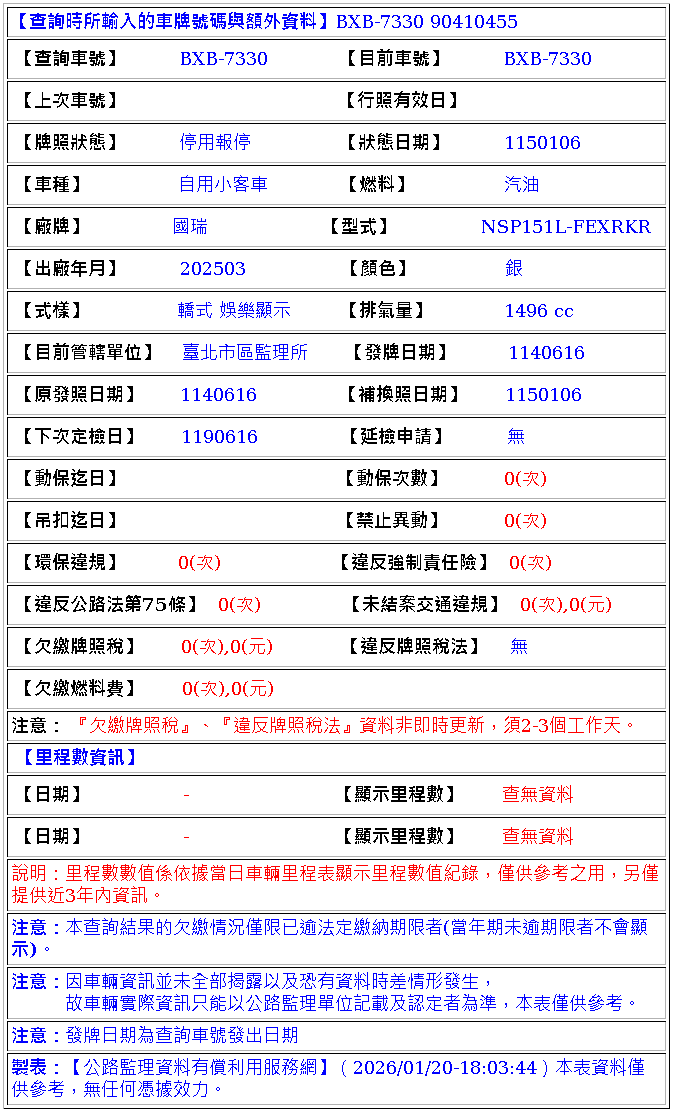 2025年03月出廠 2025年06月16日領牌 實車里程:973公里