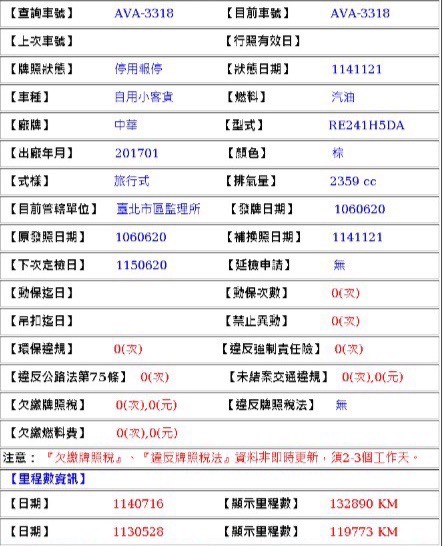 2017年06月20日領牌 實車里程:136788公里