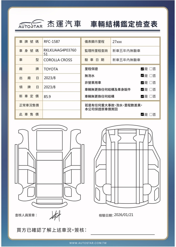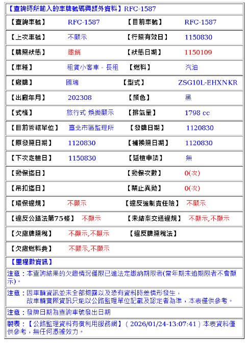2023年08出廠 2023年08月30日領牌 實車里程:27536 公里