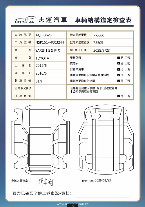 2016年06月13日領牌 實車里程:77869公里