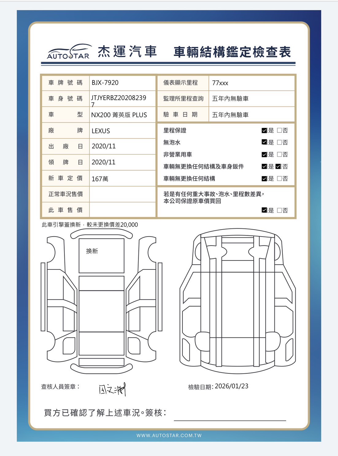 2020年11月23日領牌 實車里程:77407公里