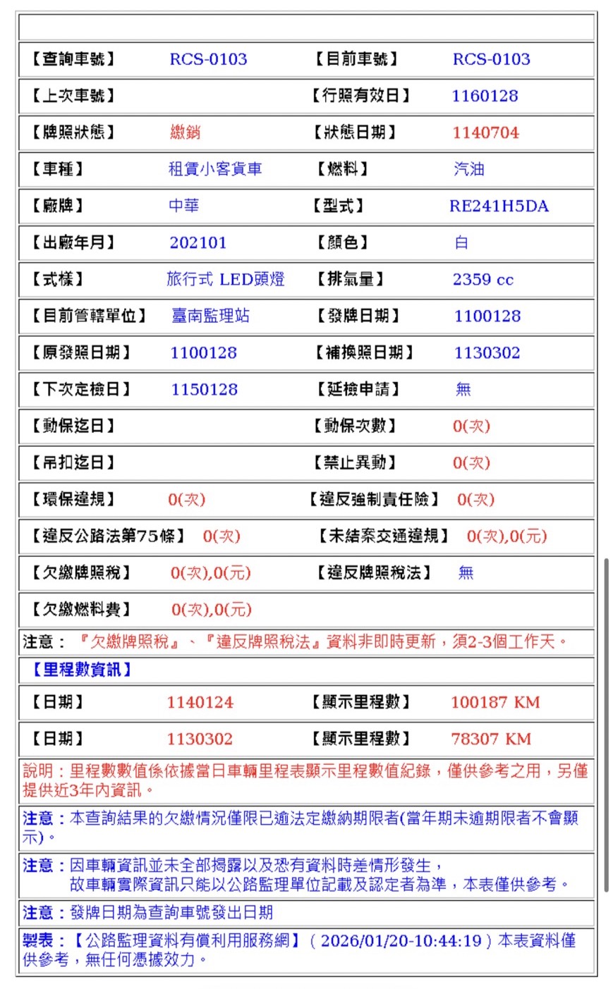 2021年01月28日領牌 實車里程:113380 公里