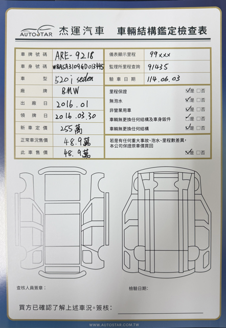 2016年01月出廠 2016年 03月 30 日領牌 實車里程:99863公里