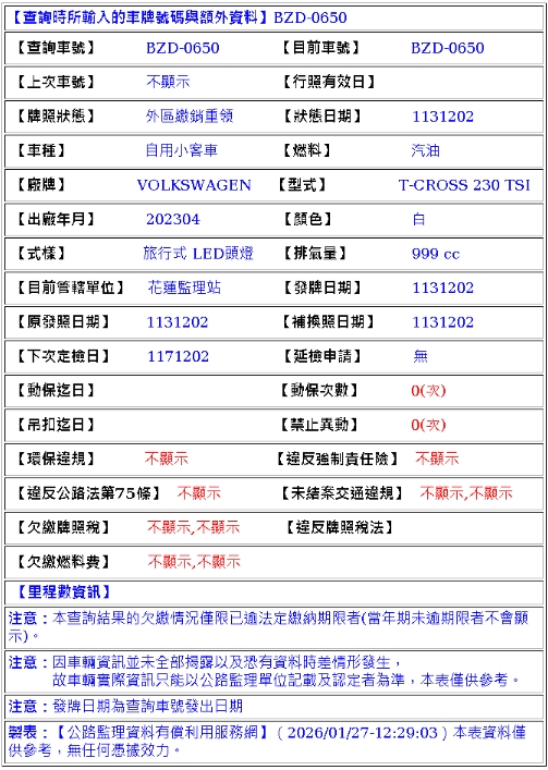 2023年4月出廠 2023年7月領牌 實車里程:26965KM