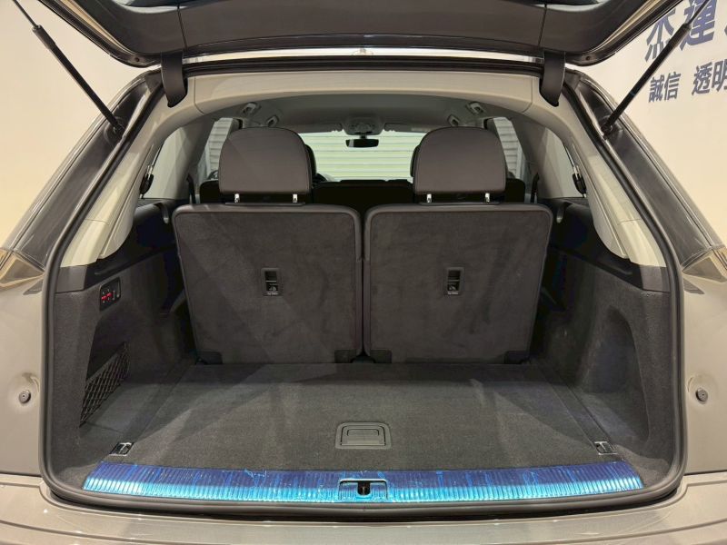 亮點: 新世代Audi Q7在外觀有架式十足的車頭設計,透過融入鮮明的鍍鉻橫柵單體式盾型水箱護罩,雕琢出令人驚豔的立體造型,搭配寬盾型外框和獨特的水箱護罩肋條結構,賦予車頭更為霸氣的面貌;目光移至車尾的水平線條和新穎的環覆式尾門,搭配先進的LED尾燈組,以及水平式幾何線條,襯托出旗艦氣度,而採用鋁合金後下護飾板融合下方擾流擴散板,將左右雙出梯形尾飾管包覆其中,營造協調而洗鍊的視覺感受呈現。
