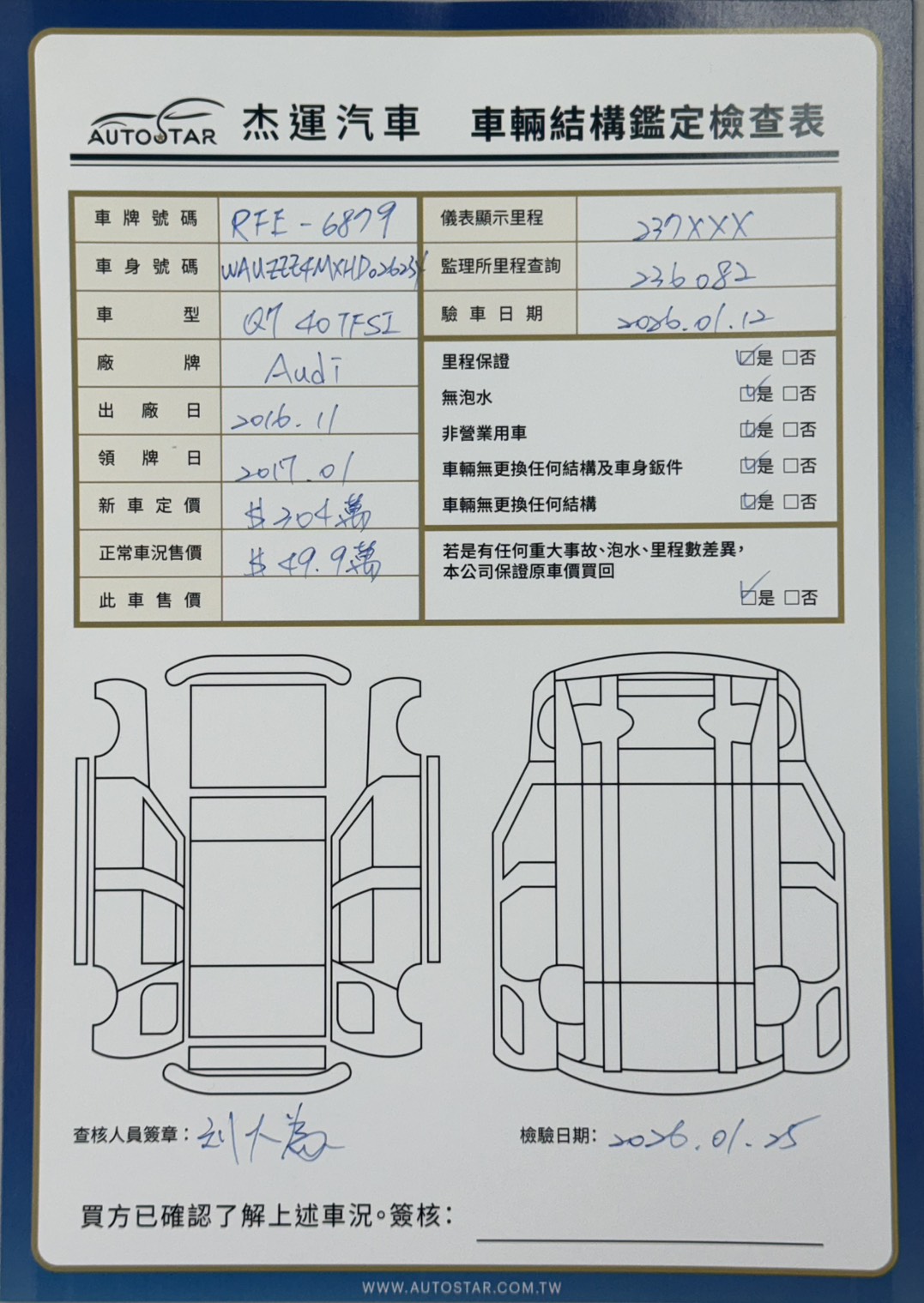 2016年11月出廠 2017年01月16日領牌 實車里程:237251 公里