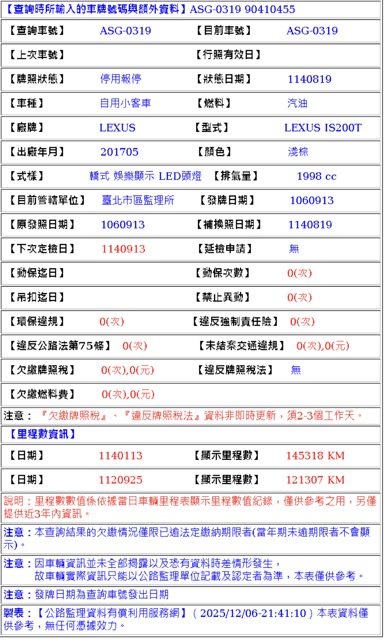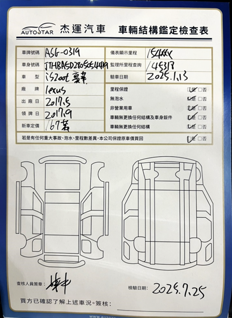 2017年05月出廠 2017年09月13日領牌 實車里程:154964 公里