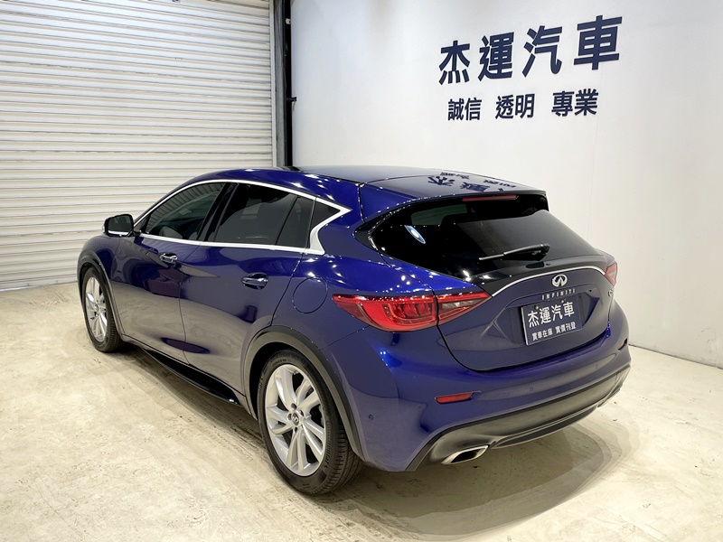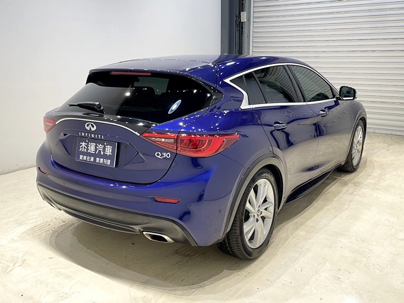 亮點: 2017年款Infiniti Q30 1.6T風尚版是一款豪華小型掀背跨界車,搭載1.6升渦輪增壓直列4缸引擎,可輸出約156hp最大馬力與25.5kg·m扭力,搭配7速雙離合器自手排變速箱與前輪驅動設定,平均油耗約14.7 km/L。車身為5門5人座掀背設計,外型融合掀背靈活與休旅跨界動感風格。標配18吋鋁圈、LED燈組與豪華內裝,內裝有全景天窗、雙區恆溫、方向盤快控、Nappa皮質座椅等舒適配備。安全方面具備全車標配7氣囊與多項主動安全科技,Euro NCAP評價高達5顆星,表現出色。2017年式並新增Push Start啟動按鈕,但維持原本售價不變。